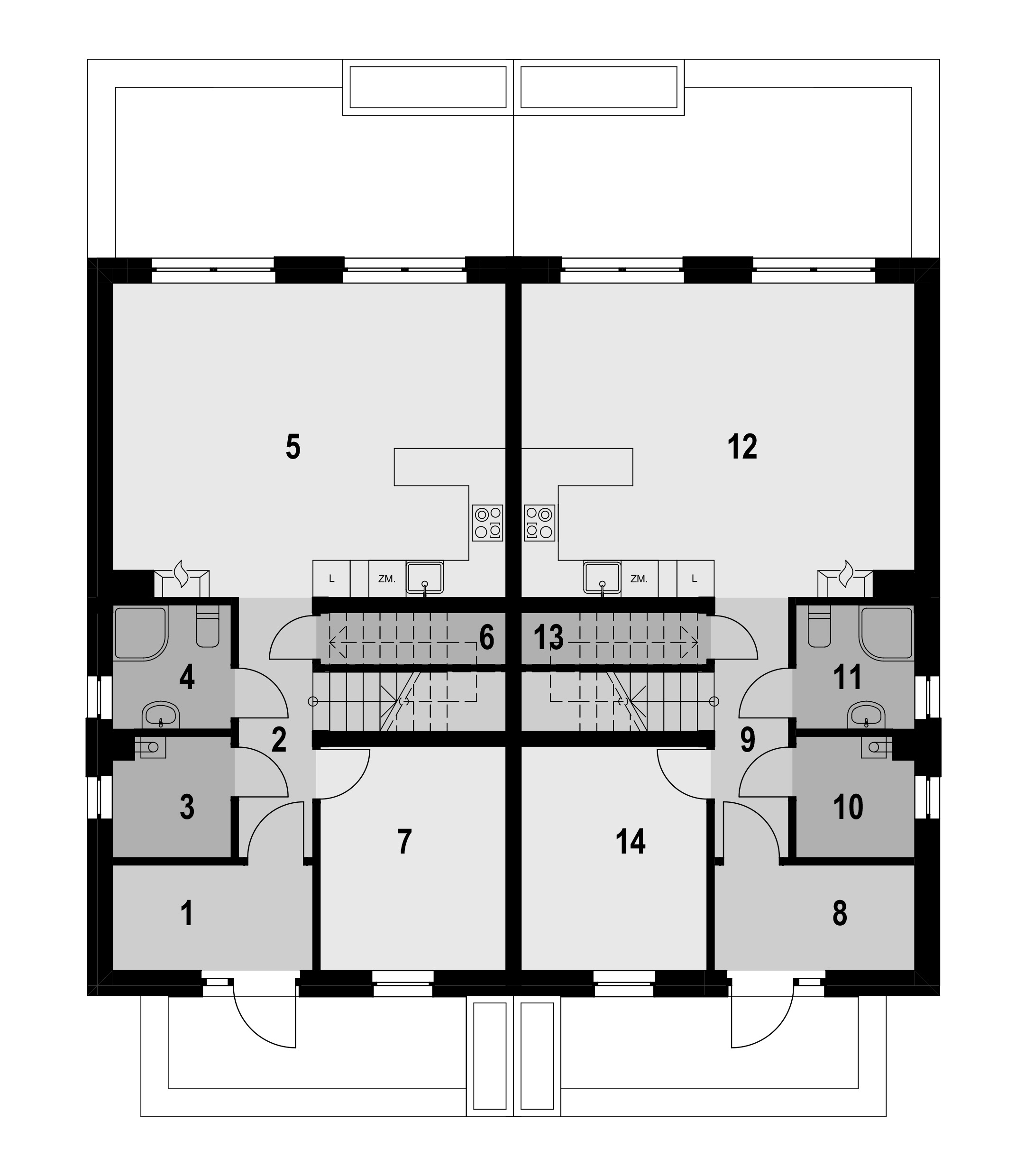 Projekt domu Eco 14 to idealna oferta zarówno dla osób prywatnych, jak i dla deweloperów. Jego prosta i zwarta bryła, zwieńczona dwuspadowym dachem, gwarantuje niskie koszty budowy oraz szybki czas realizacji inwestycji.