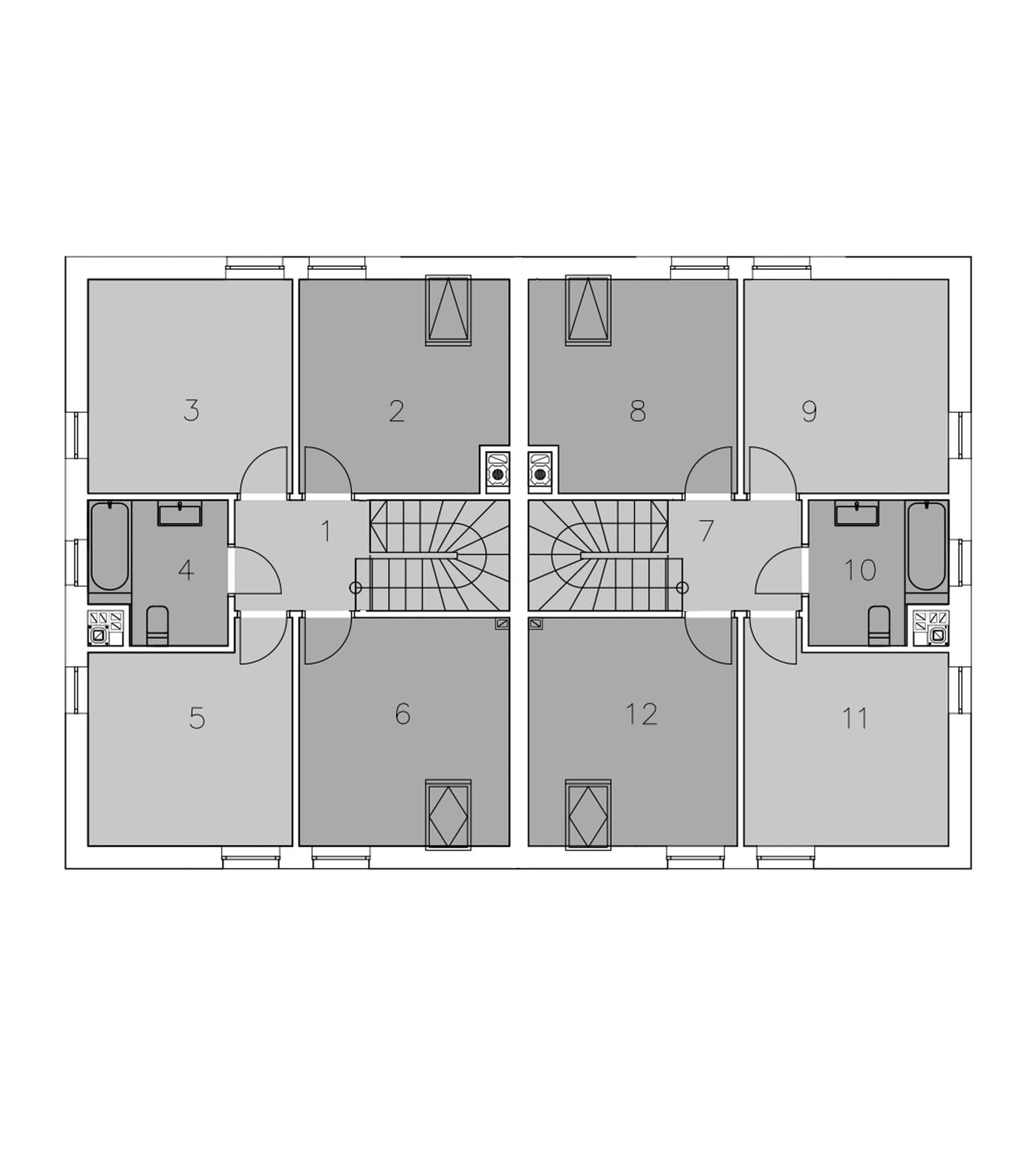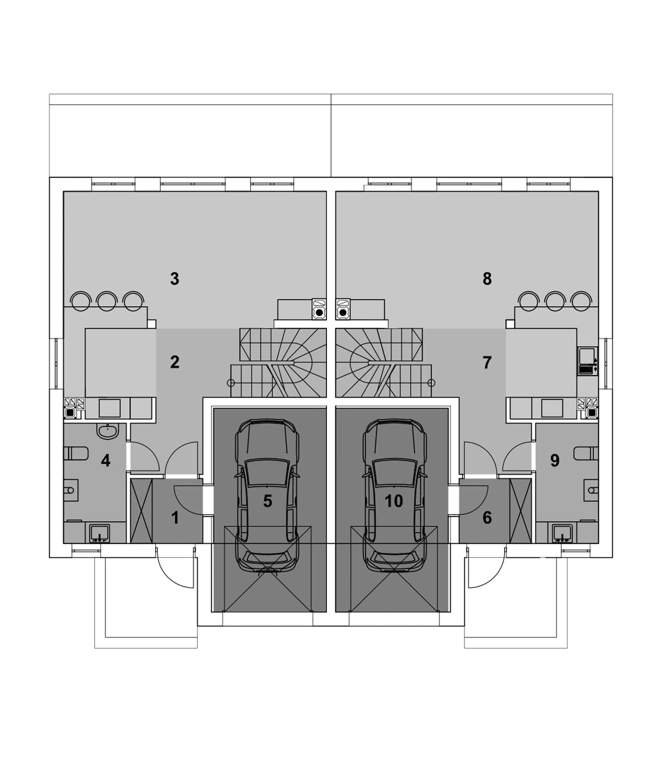 Eco 21 to bliźniak z poddaszem użytkowym i garażem jednostanowiskowym o powierzchni ponad 100 metrów kwadratowych. Jego największymi atutami są przestronny salon z kuchnią i aż cztery sypialnie usytuowane na poddaszu. Ergonomika pomieszczeń sprawia, że dom ten komfortowo pomieści 4 osobową rodzinę.