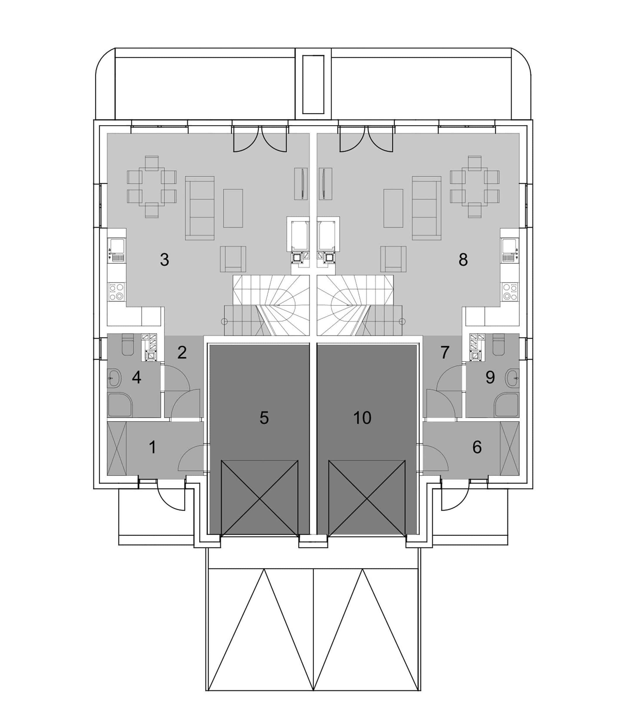 Projekt Eco 22 to propozycja przestronnego domu w zabudowie bliźniaczej, który zmieści się nawet na małej działce. Dzięki zwartej bryle budynek jest energooszczędny i tani w budowie. Eco 22 prezentuje się niezwykle elegancko, zachowując swój przytulny charakter. Przestronne i jasne wnętrza oraz komfortowo zorganizowana przestrzeń stanowią doskonałe miejsce dla 4 osobowej rodziny.
